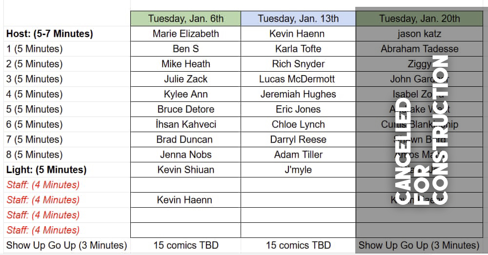 - Grow Your Craft – Hone your material in front of a live, supportive audience every week.
